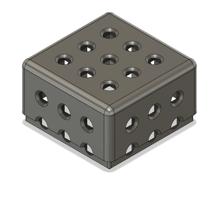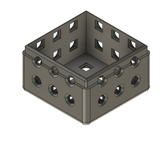 One of our team members, Carson Whitt, designed and 3D printed a 4x4x4 inch hollow two piece cube to hold all of the hardware needed for the Green-O-Meter.On the outer part of the shell we put holes (9 on each side) to let the LEDs shine through.