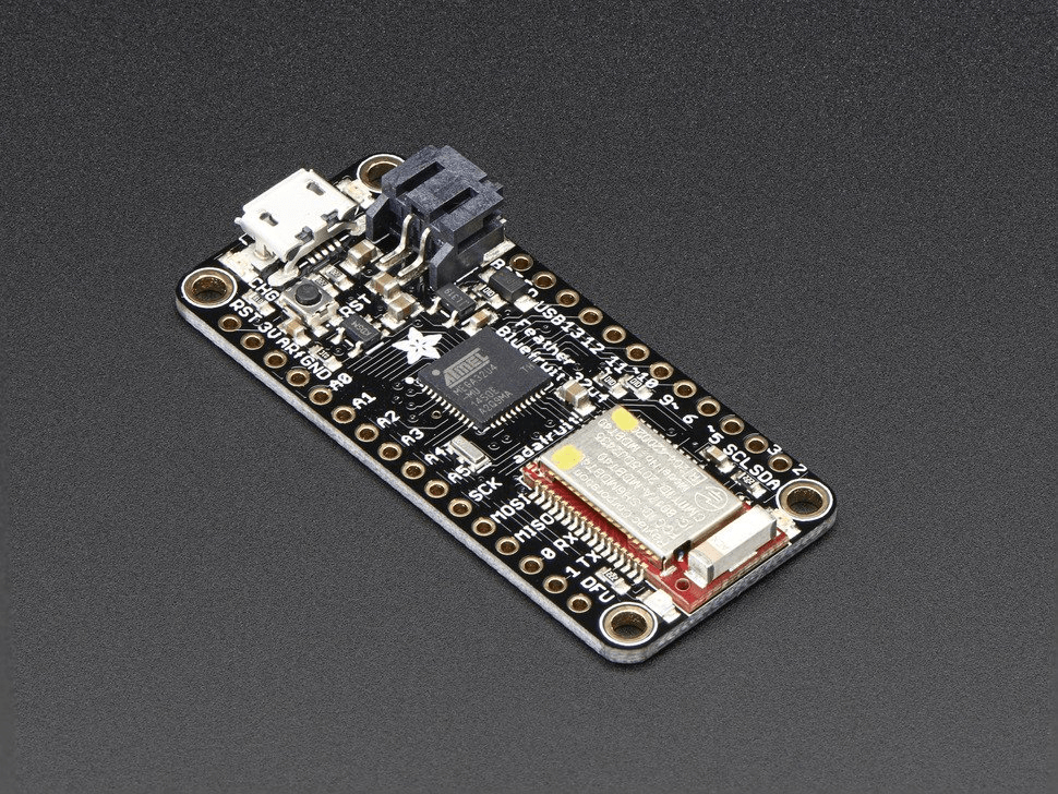 The little computer controlling this whole project! It’s an Arduino compatible board with a Bluetooth LE module. With this we can load the code that we create to run the LEDs and sensors.