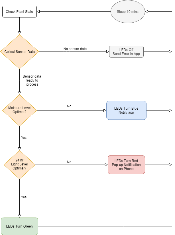 We also decided that a future implementation would have a light sensor for determining whether or not the plant is getting adequate light.